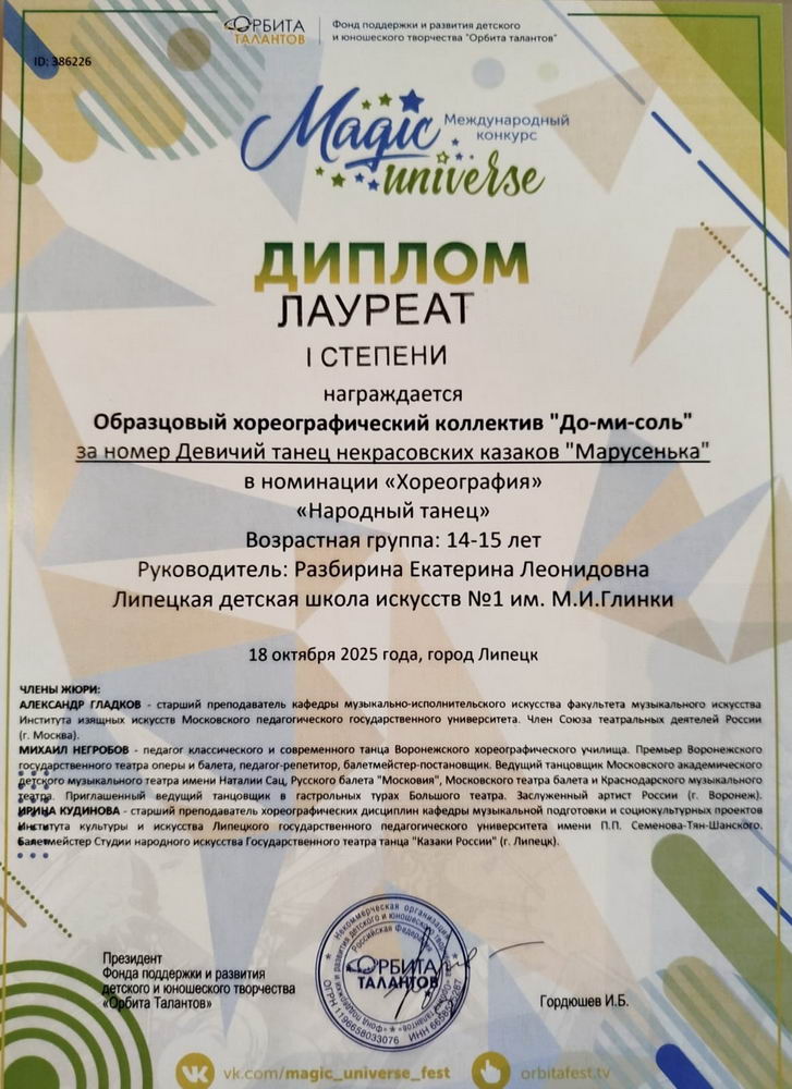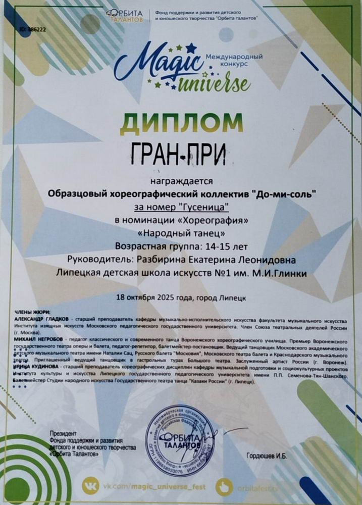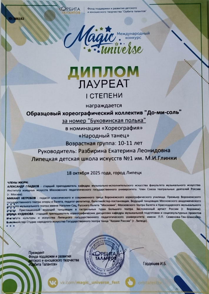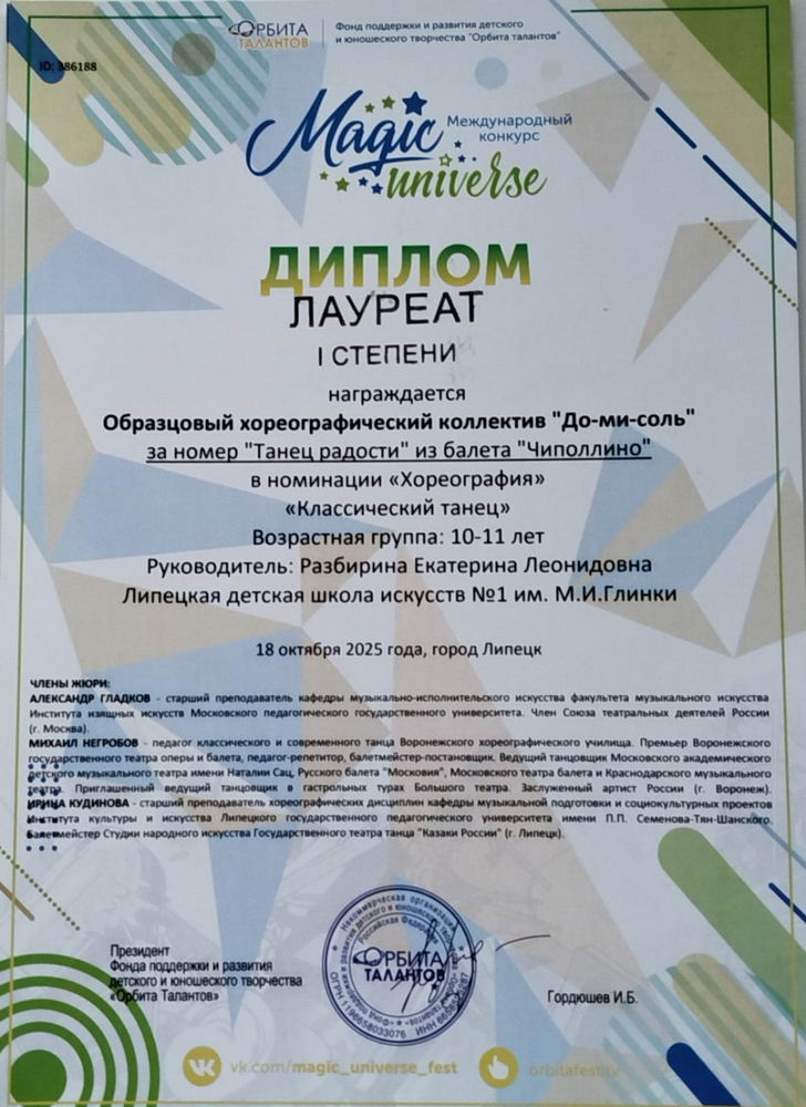 26 октября 2025 года, состоялся VI Всероссийский хореографический конкурс "Таланты Черноземья" в городе Липецк.