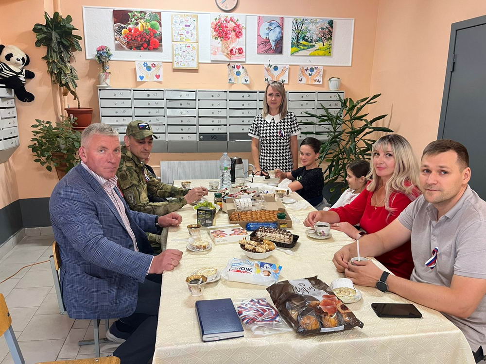 После церемонии все собрались вместе, чтобы пообщаться, выпить чая и насладиться вкуснейшими пирогами. Атмосфера была тёплой, дружественной и наполненной гордостью за нашу страну.