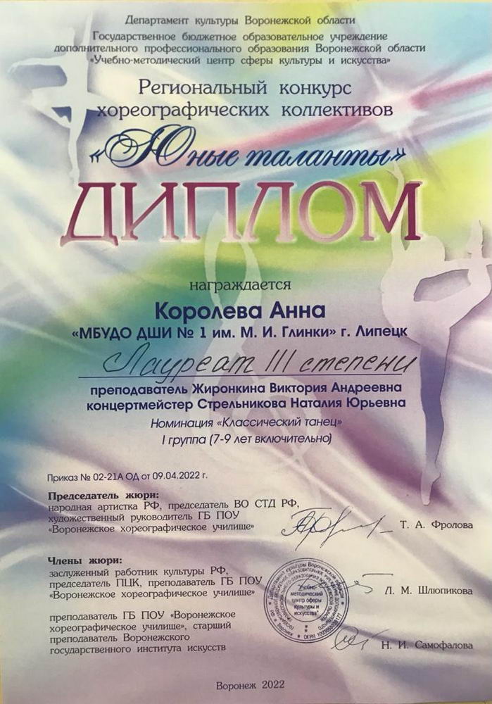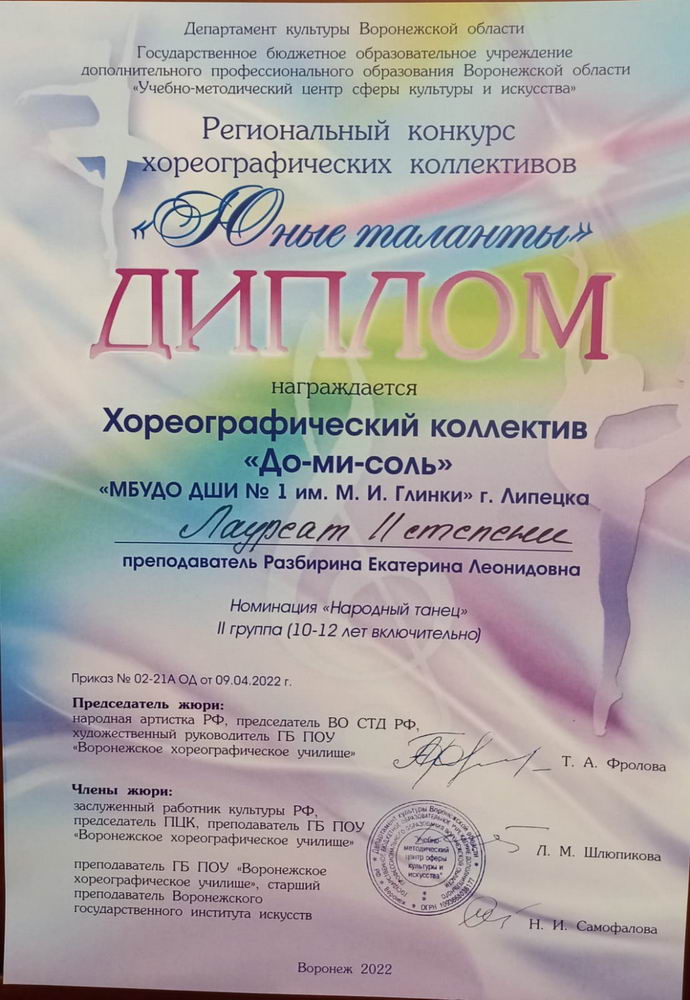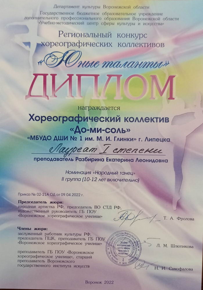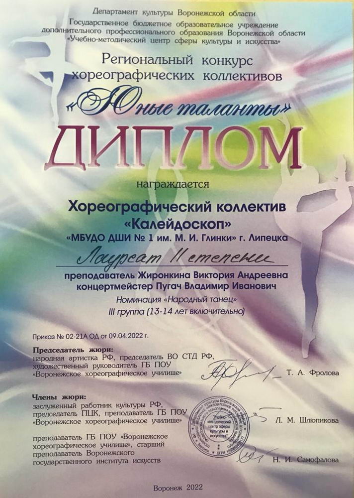 В Воронеже прошел Региональный конкурс хореографический коллективов «Юные таланты». Учащиеся хореографического отделения и преподаватели Жиронкина В.А. и Разбирина Е.Л. порадовали нас отличными результатами. Поздравляем победителей!!!