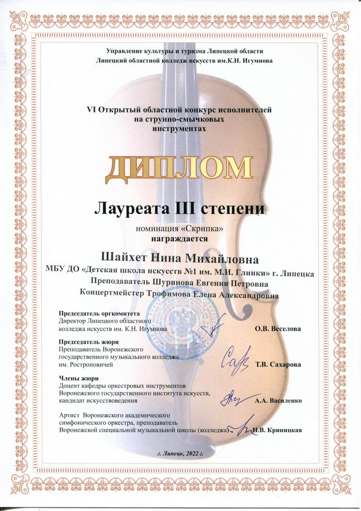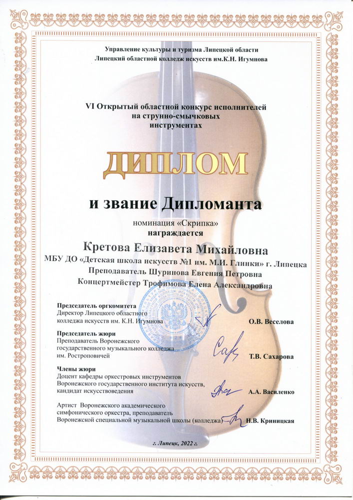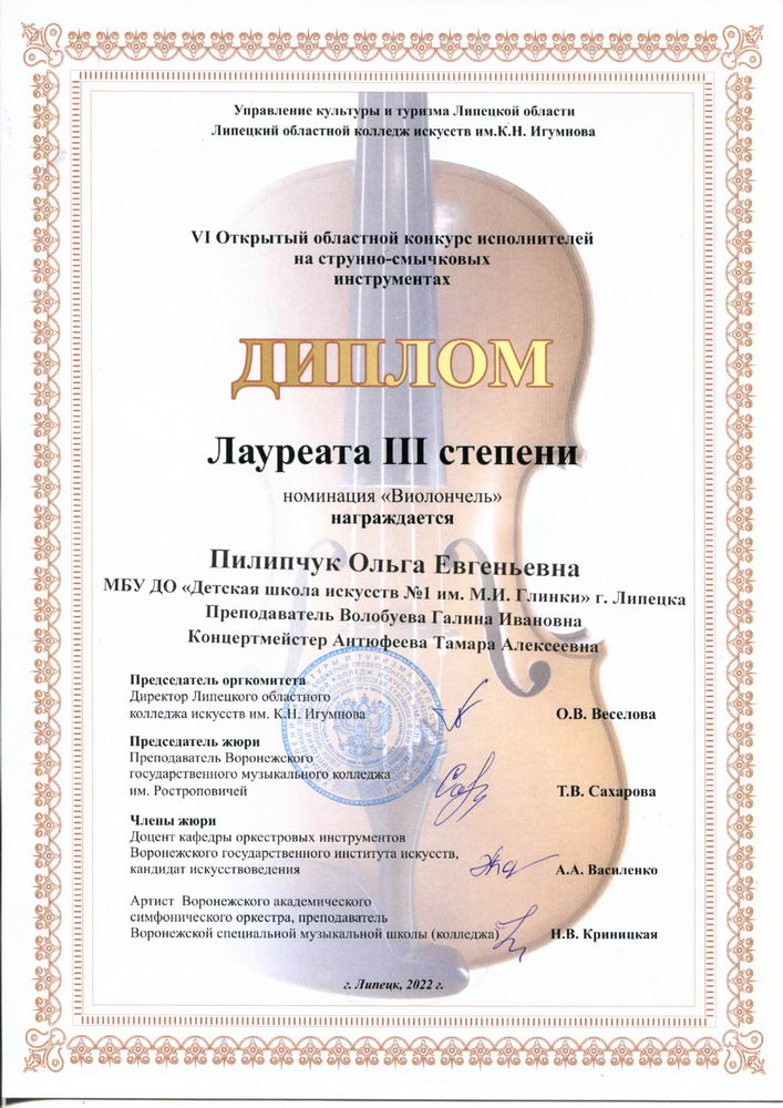 Поздравляем лауреатов и дипломантов VI Открытого областного конкурса исполнителей на струнно-смычковых инструментах и педагогов Савченкову И.В., Шуринову Е.П., Волобуеву Г.И.!!!