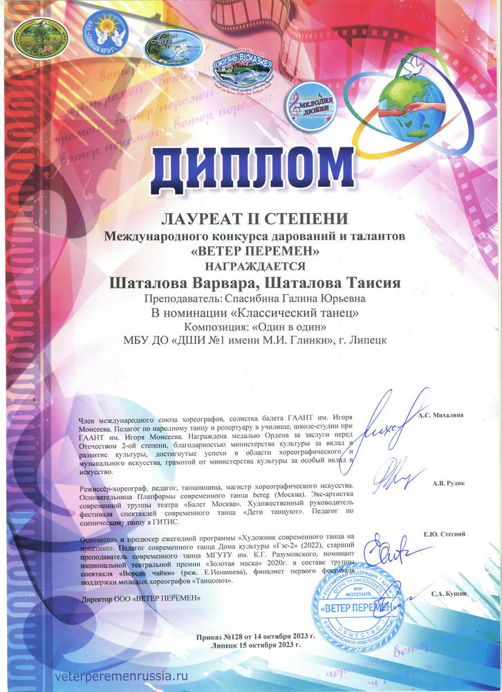 • Дуэт Шаталова Варвара, Шаталова Таисия - Лауреат 2 степени