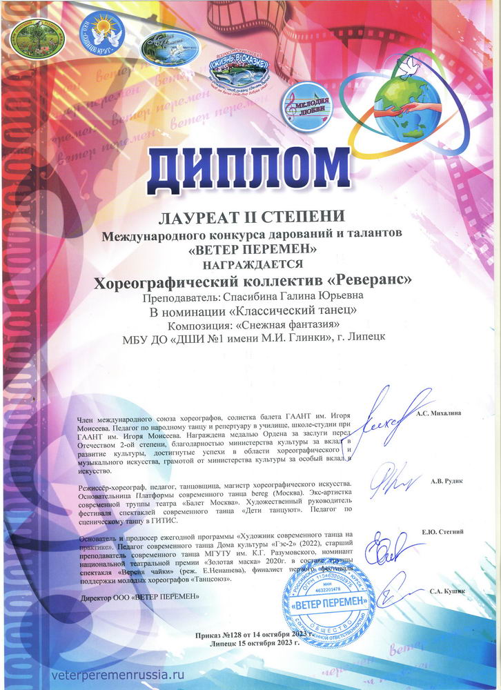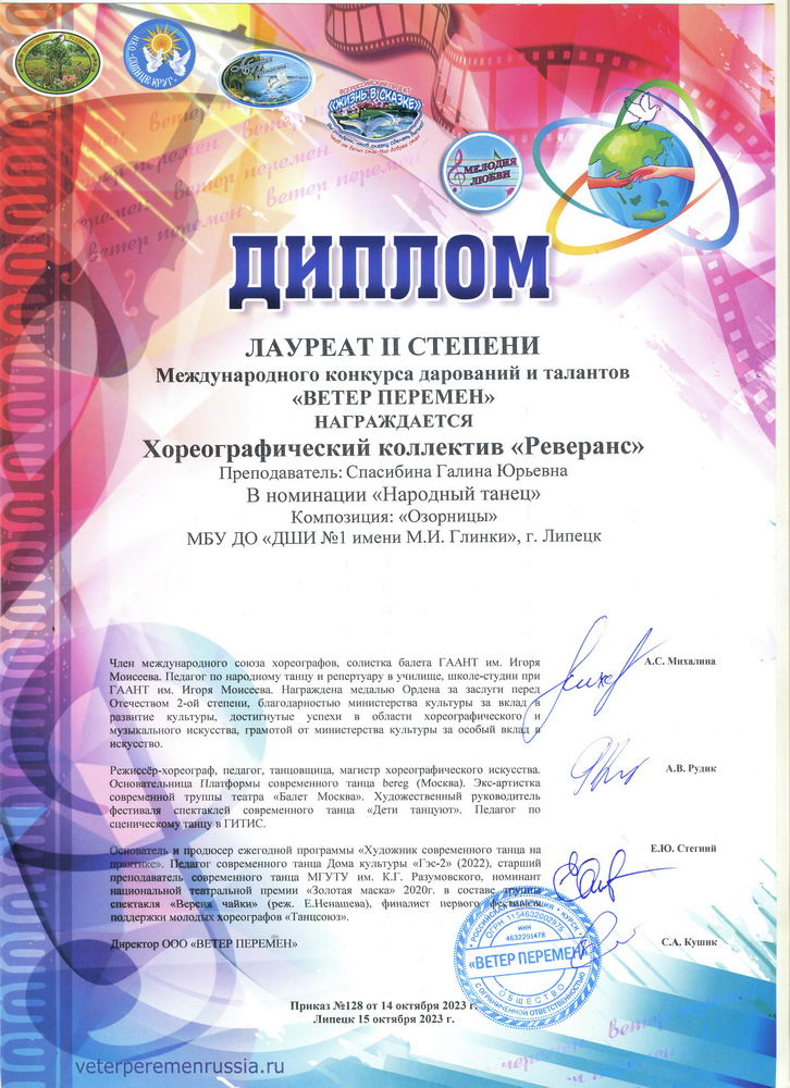 • Хореографический коллектив "Реверанс" -трижды Лауреат 2 степени