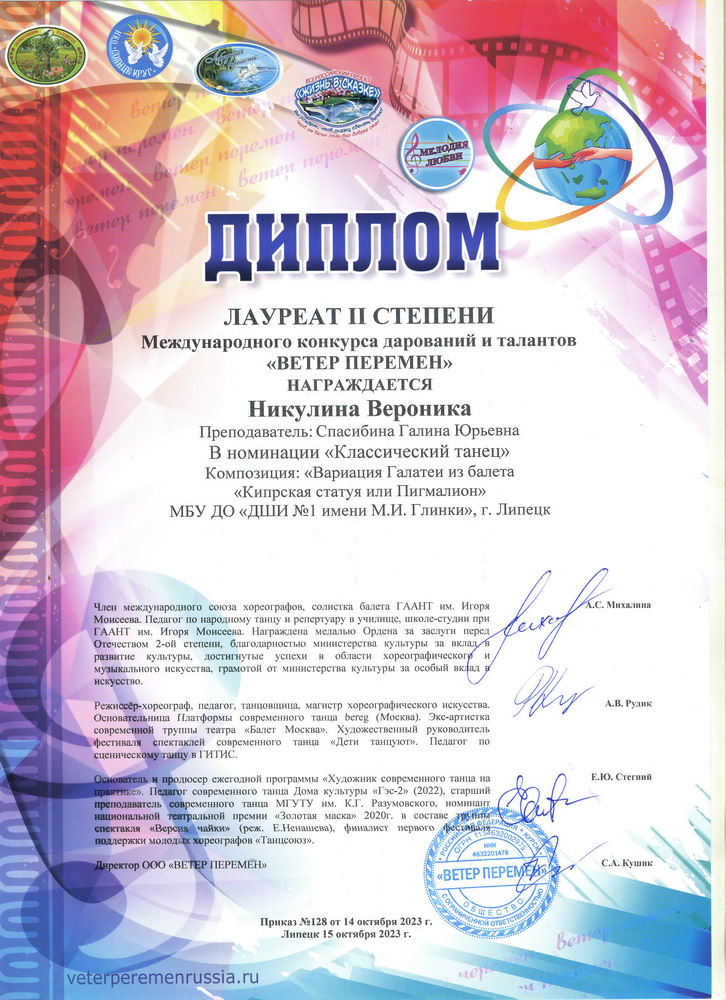 15 октября - Международный конкурс дарований и талантов "ВЕТЕР ПЕРЕМЕН" город Липецк.