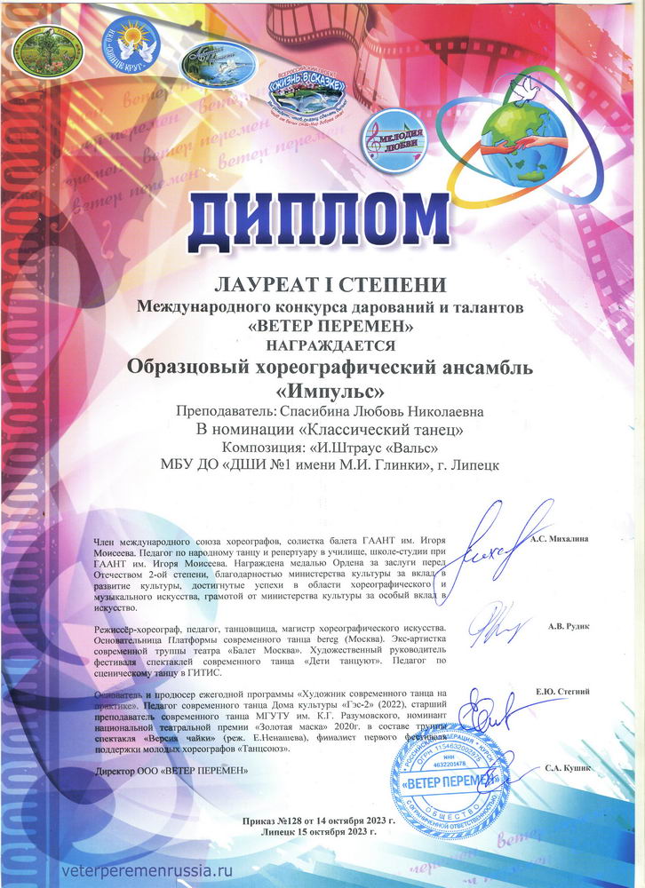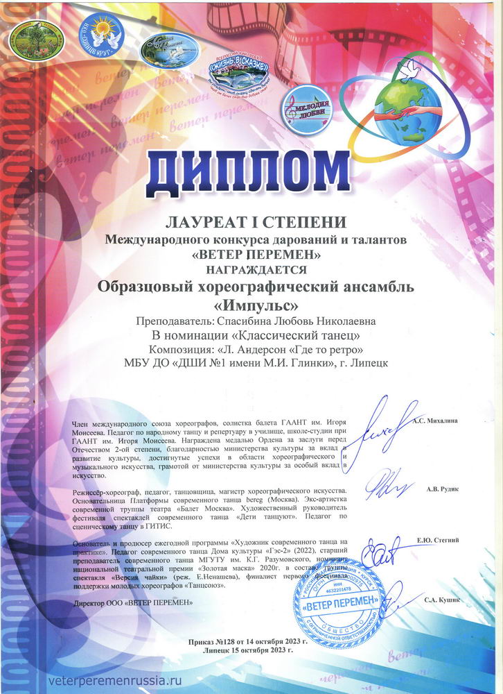 - Образцовый хореографический ансамбль "Импульс" - ГРАН ПРИ и трижды Лауреат 1 степени