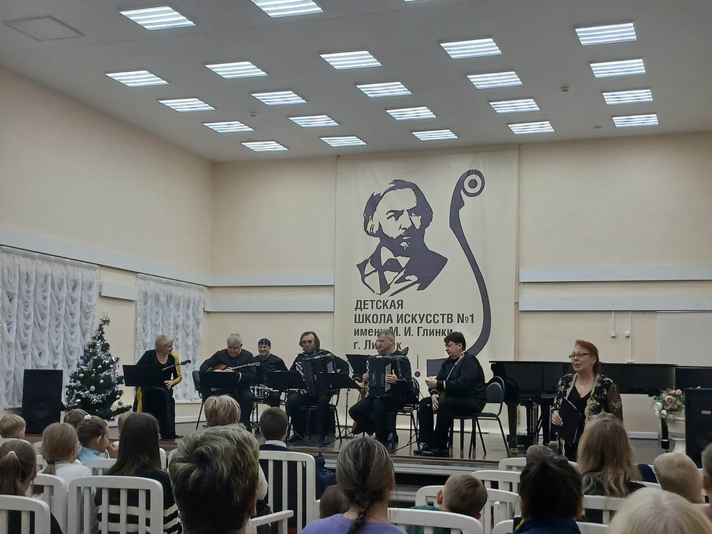 3 декабря 2024 г. с уникальной концертной программой «Танцевальная мозаика» на сцене концертного зала школы выступил Ансамбль русских народных инструментов Липецкой государственной филармонии "Мозаика" (художественный руководитель Вера Камбалина) и солист Липецкой государственной филармонии М. Вербицкий (тенор). В программе прозвучали произведения М. Глинки, А. Дворжака, Д. Шостаковича, К. Андерсена, М. Теодоракиса и П. Сарасате. Зрители погрузились в мир музыки, где классика встречается с танцевальным духом, и наслаждались волшебством живого исполнения. Ведущая Алла Загвоздкина.