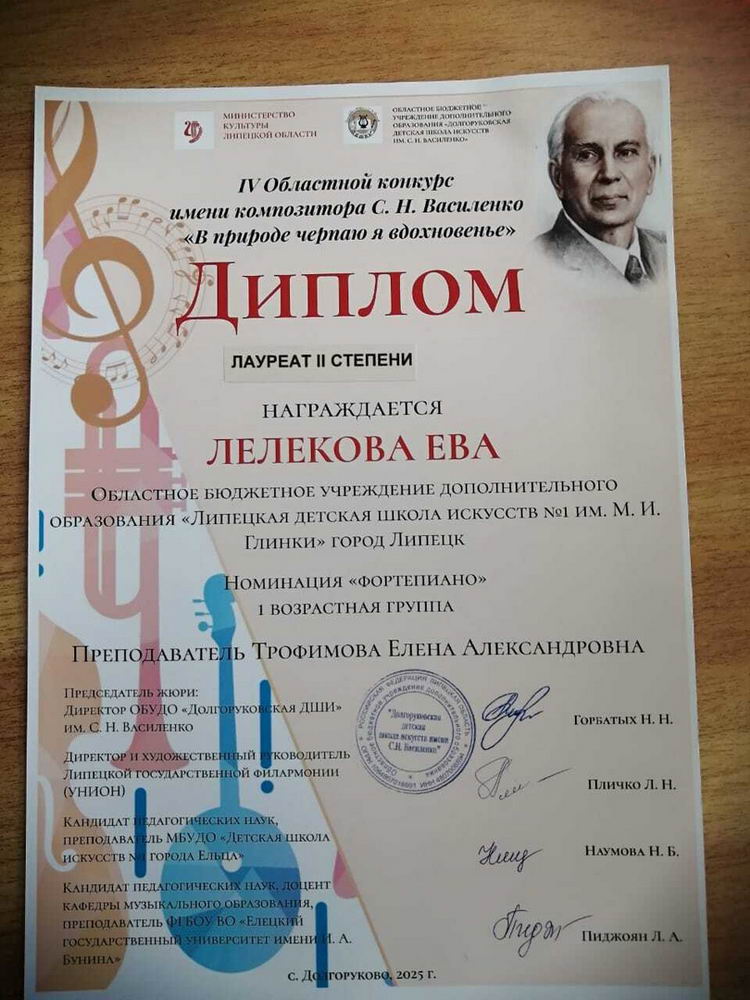 • Лелекова Ева Лауреат 2 степени (преподаватель Трофимова Е.А.)