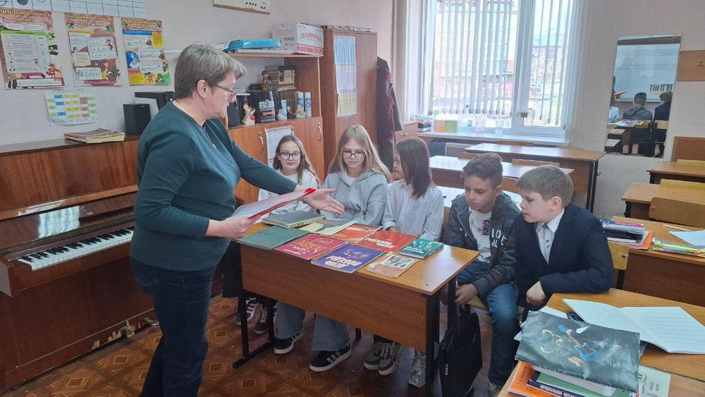 Сегодня в нашей школе, ЛДШИ 1 им. М.И. Глинки, библиотекарь Кузнецова Людмила Львовна провела ознакомительную беседу для учащихся 2 класса о композиторах и произведениях, посвященных Великой Отечественной войне.