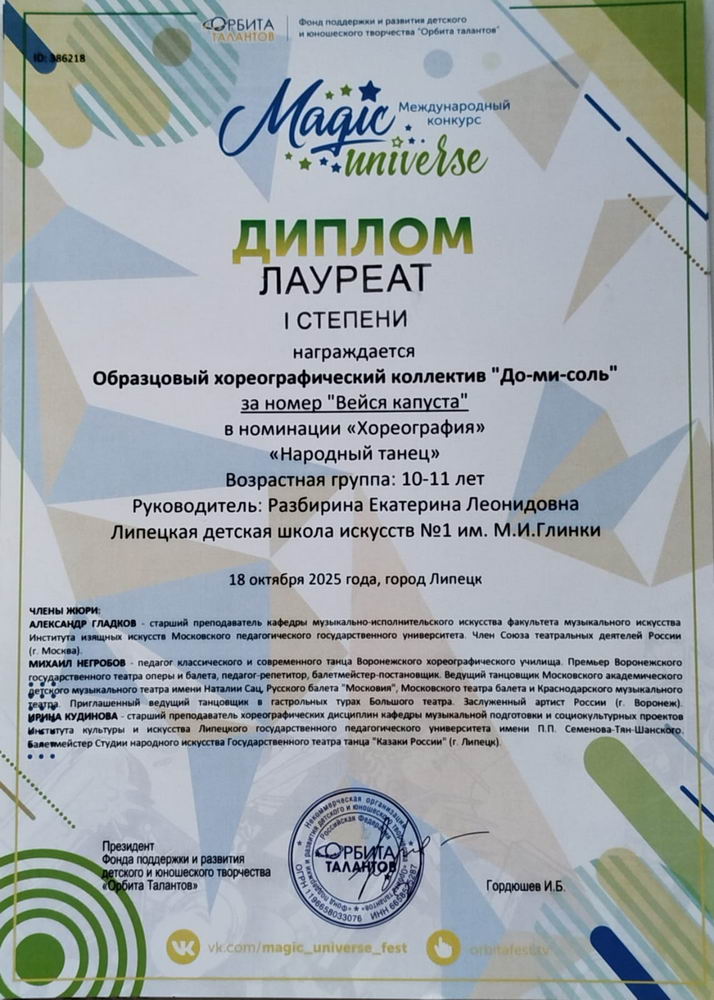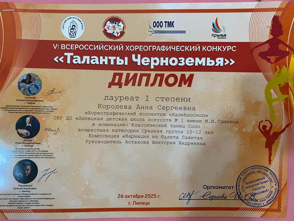 26 октября 2025 года, состоялся VI Всероссийский хореографический конкурс "Таланты Черноземья" в городе Липецк.