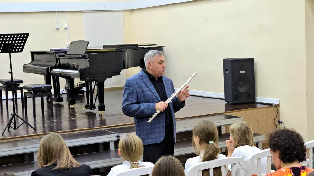 20 октября в Детской школе искусств состоялась насыщенная и познавательная встреча с преподавателем по классу флейты🪈 Павлом Вячеславовичем Каспруком. Это была не просто лекция, а настоящее погружение в мир музыки и творчества.
