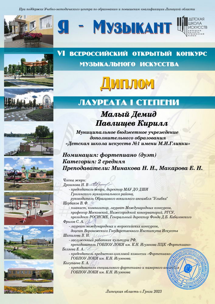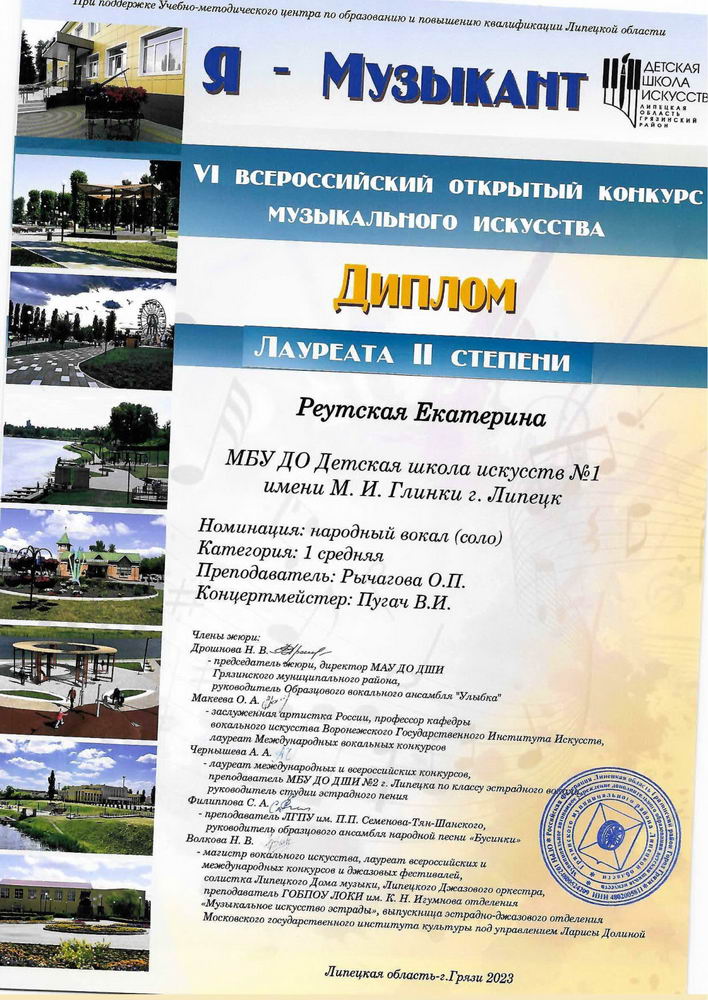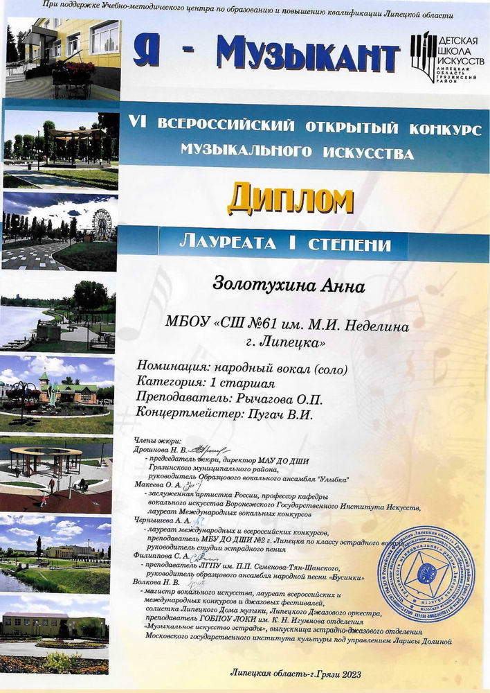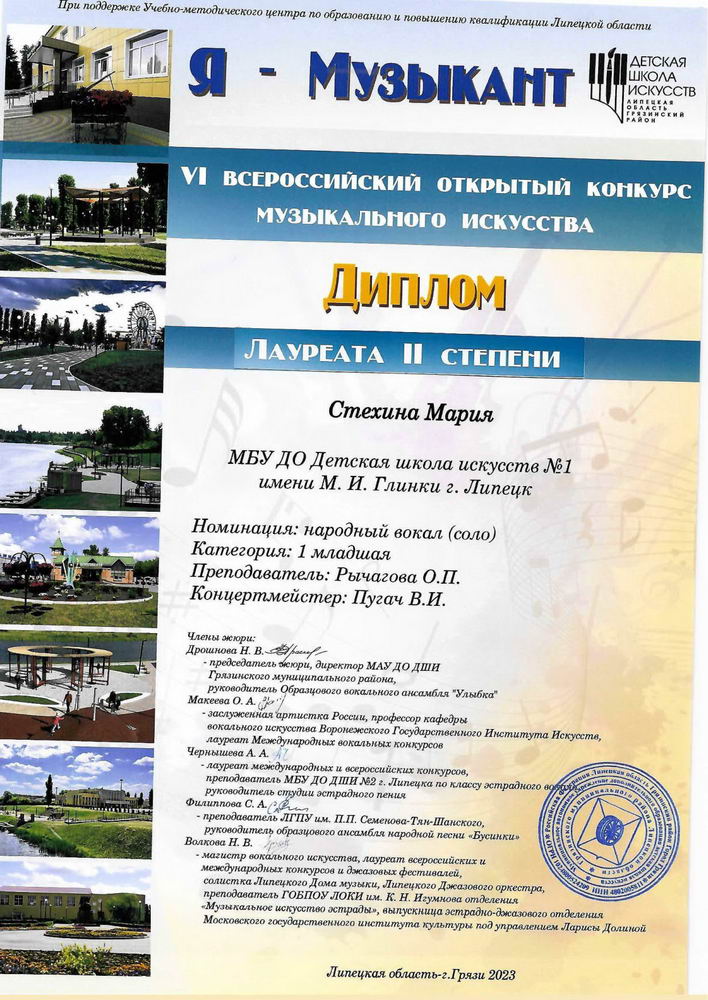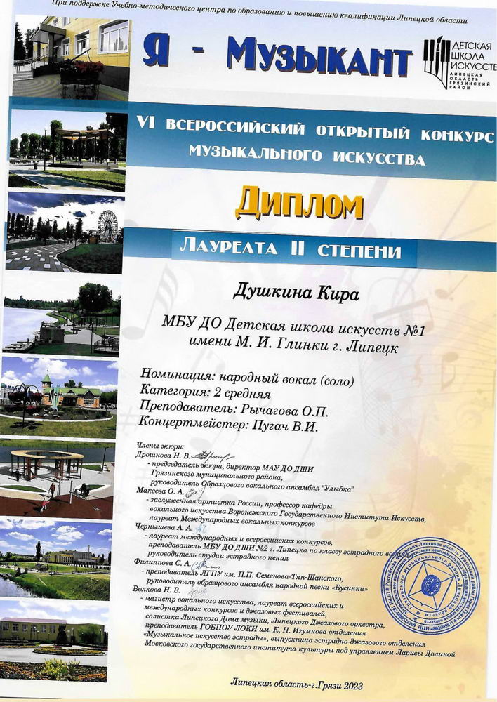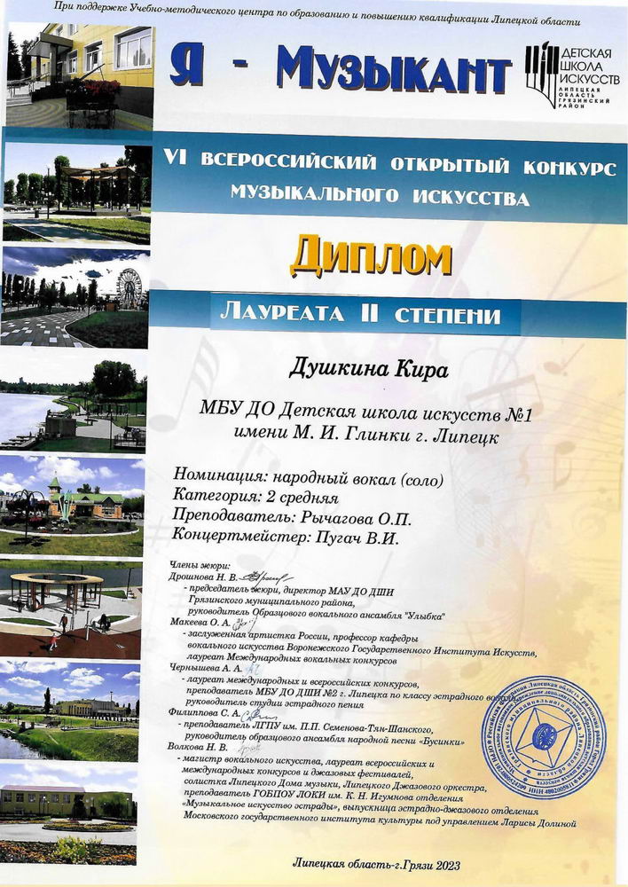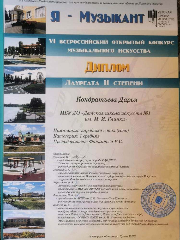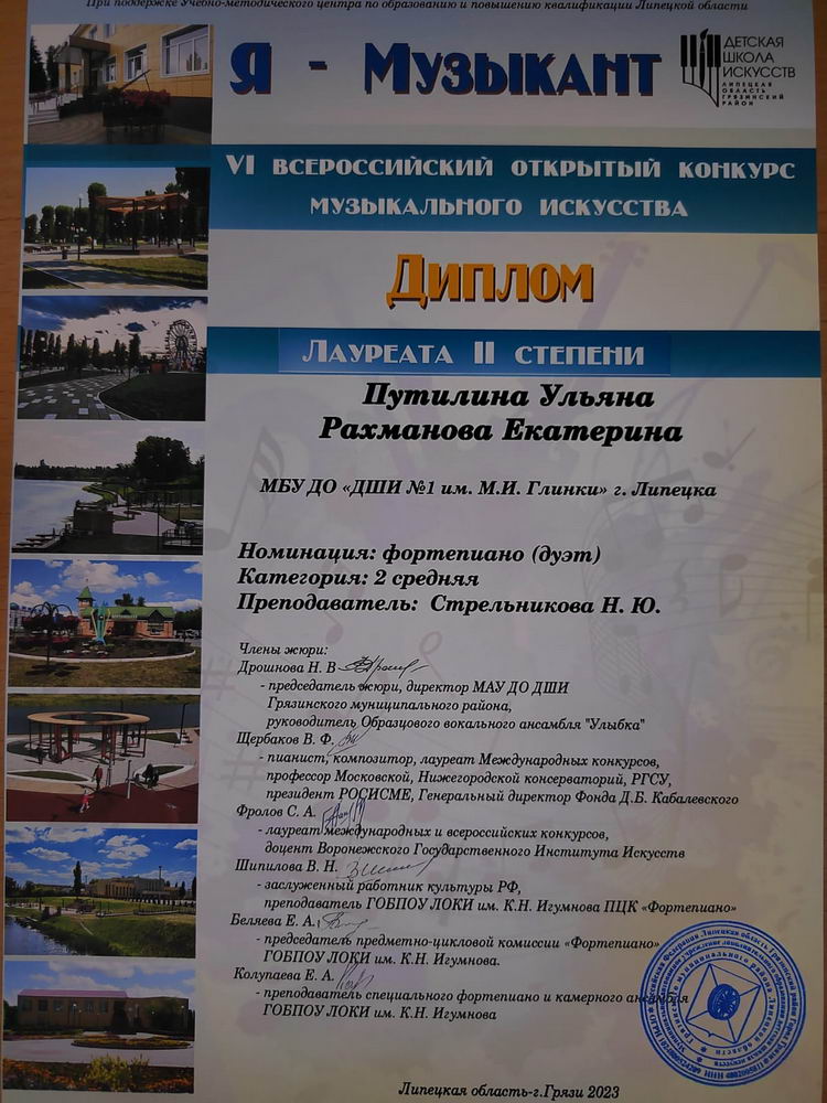 4 и 5 марта на базе Детской школы искусств г. Грязи состоялся VI Всероссийский конкурс музыкального искусства «Я — музыкант», в котором приняли участие учащиеся нашей школы. Участников и победителей очень много, но мы не можем обойти вниманием никого! Поэтому поздравляем всех! Отдельно хотим поздравить ученицу отделения сольного пения Третьякову Дарью (преп. Бакай С.В.) с получением ГРАН ПРИ конкурса!