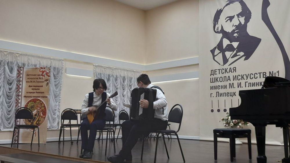 14 февраля в ДШИ1 им. М.И. ГЛИНКИ начался замечательный поистине русский творческий проект "Музыку создаёт народ ..." . Первый концерт фестиваля прошёл под эгидой Андреевского флага и звучание поистине русской балалайки и домры. Все школы города , а также ЛОКИ ИМ.ИГУМНОВА приняли участие в открытии проекта. Замечательное исполнение, встречи с коллегами и просто прекрасная музыка подарили зрителям много тепла и доброты русской души. Выставка фотокартин прикладного искусства Липецкого музея украсили начало фестиваля народного искусства в стенах нашей школы.