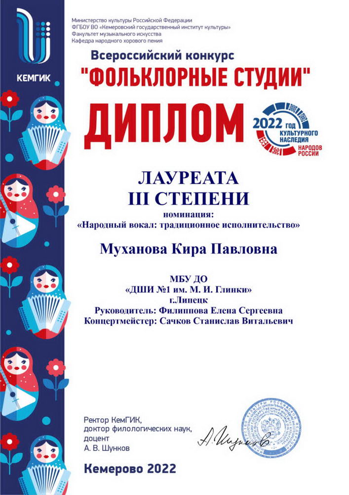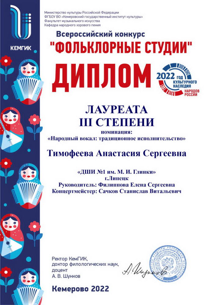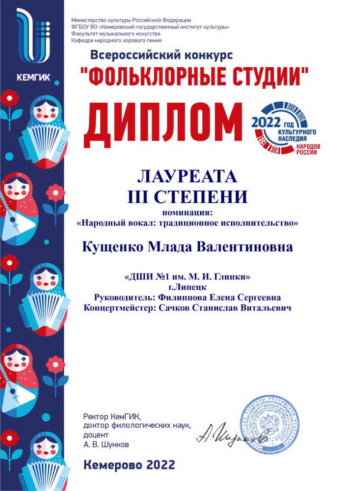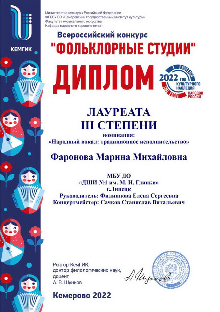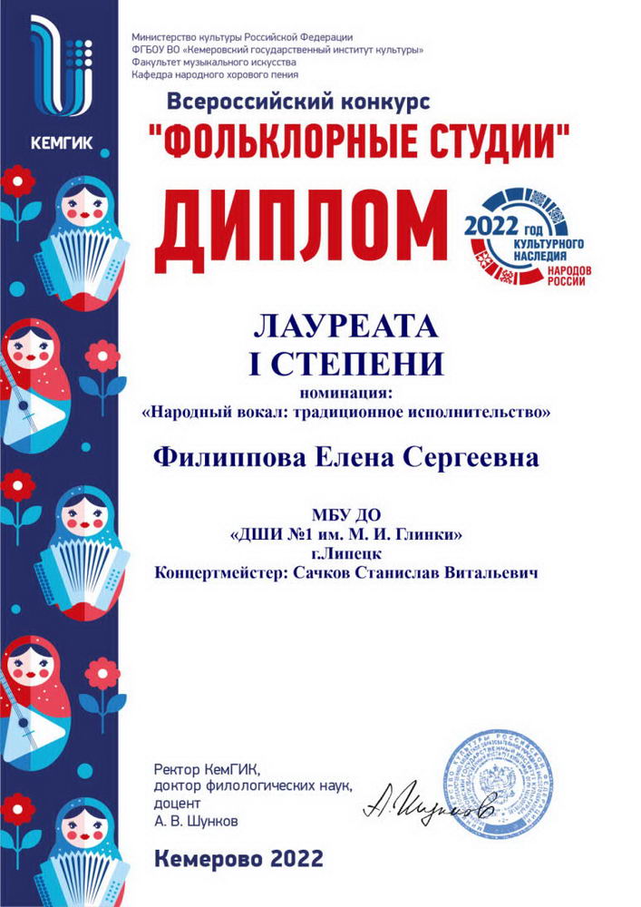 Вот и подоспели дипломы с летних конкурсов. Отделение сольного народного пения не привыкло отдыхать) Не только учащиеся, но и педагоги решили не сидеть на месте и поучаствовать в конкурсах и фестивалях. Поздравляем Филиппову Елену Сергеевну и Шуленину Элину Владимировну и их учениц!