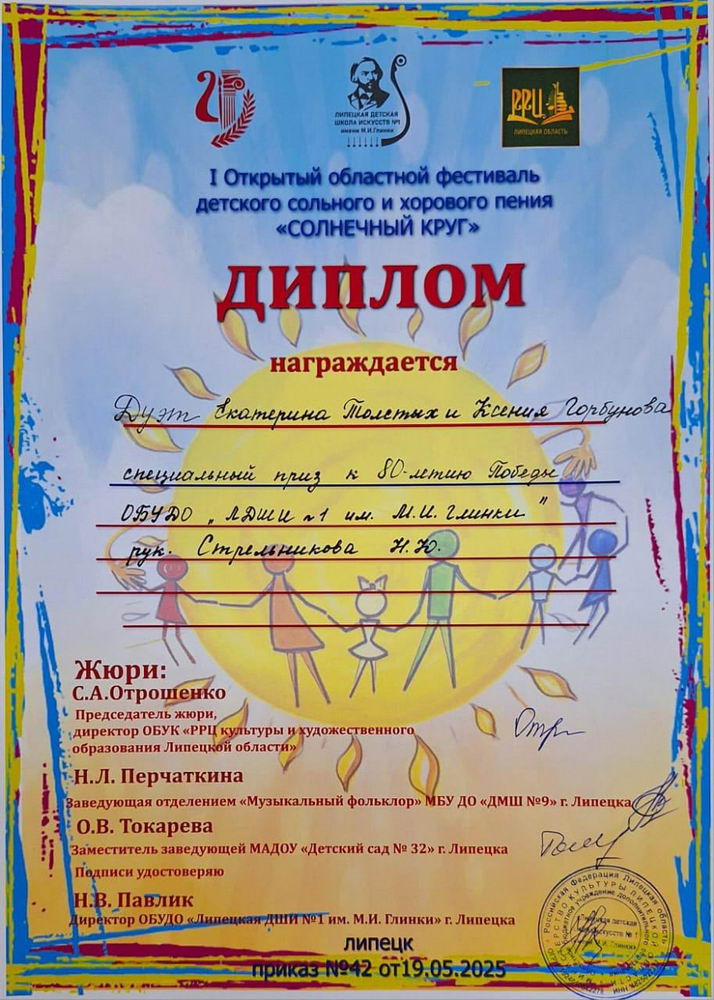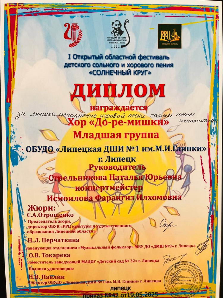 Все участники фестиваля получили дипломы и сувениры. А жюри конкурса отметило, что фестиваль стал важной площадкой для раскрытия талантов юных артистов, укрепления творческих контактов между образовательными учреждениями и формирования интереса к музыкальному искусству у самой младшей аудитории.