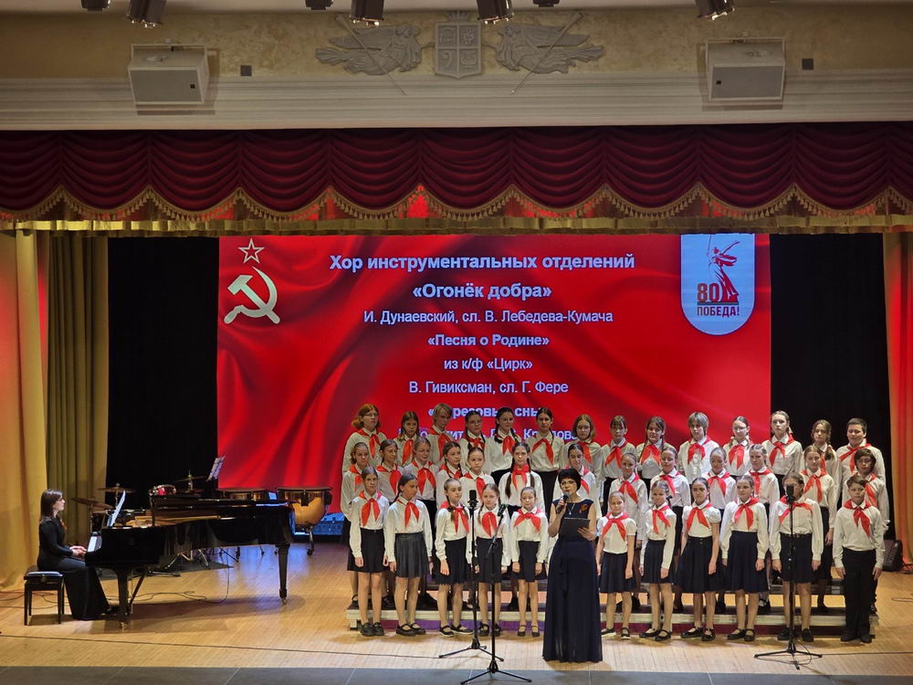 Отчётный концерт школы, посвященный 80- летию Великой Победы ️"Советскому народу - победителю посвящается..". В программу вошла музыка композиторов эпохи Советского Союза, которую исполнили солисты и творческие коллективы школы.