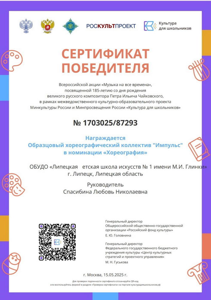 Преподаватель по классу скрипки, Савченкова Ирина Викторовна, прошла серьезный профессиональный отбор и получила приглашение принять участие в курсах повышения квалификации, организованных образовательным центром «Сириус».