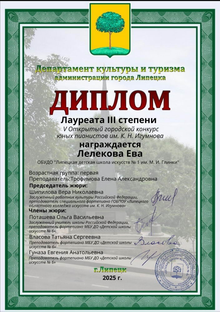 - Лелекова Ева Лауреат 3 степени (Трофимова Е.А.)