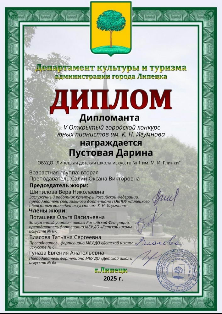14 мая 2025 г. в Детской школе искусств №6 состоялся V Открытый городской конкурс юных пианистов имени К.Н. Игумнова, который проводится в память о Великом русском пианисте и педагоге Константине Николаевиче Игумнове - основоположнике одной из ветвей национальной пианистической школы.
