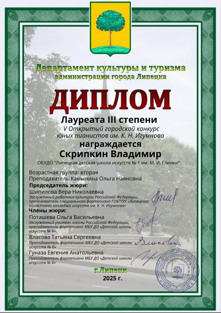 - Скрипкин Владимир Лауреат 3 степени (Камынина О.Н.)