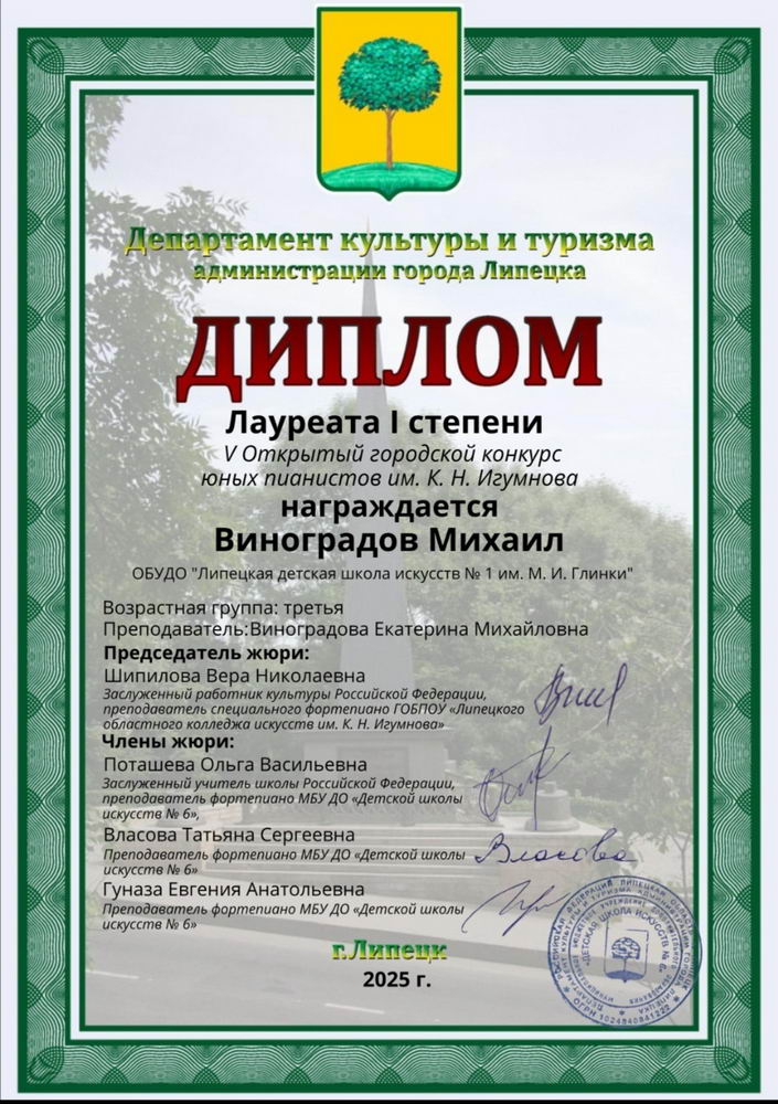 - Виноградов Михаил Лауреат 1 степени (Виноградова Е.М.)