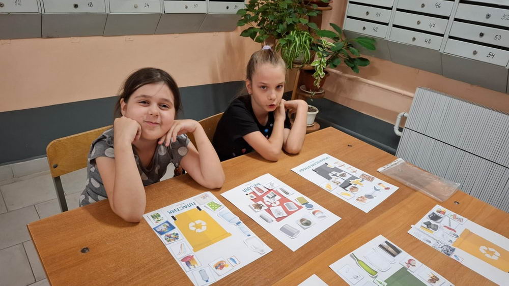 Вместе с ребятами своего двора, учащимися СШ N51, дети учились важному делу— правильной сортировке отходов. Занятие прошло весело и интересно, в виде игры, и ребята получили массу новых полезных знаний о бережливом отношении к природе.